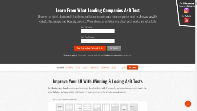 View the latest UI patterns and A/B testing from companies such as Amazon, Netflix, Airbnb, Etsy, and Google.